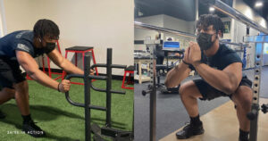 Diego Gatica, PT, DPT and Tracey, PTA, at our California, MD & Sport Performance clinic have been the therapy team working alongside Zaire as they work together to build the required strength and mobility of his knee utilizing a variety of therapeutic interventions that align with his goals while taking into consideration the post-operative healing timeframe. One of the most innovative therapeutic approaches taken to achieve Zaire’s goals is the introduction of blood flow restriction training (BFR). BFR has gained popularity in recent years due to its wide variety of target patient populations which ranges from those with chronic pain who can’t tolerate high loads on their body to athletes such as Olympic swimmer, Michael Andrew who has been using this intervention for years. All of the CAO PT locations in Southern Maryland have Physical Therapists certified to conduct this therapeutic technique through continuing education course, which is appropriate for a wide variety of patients. Through this approach, we are able to facilitate Zaire’s healing process and increase his leg strength without putting an excessive amount of weight through his operative site since this particular surgery method results in weightbearing restrictions and movement limitations in order to preserve the joint’s structural/functional integrity.
